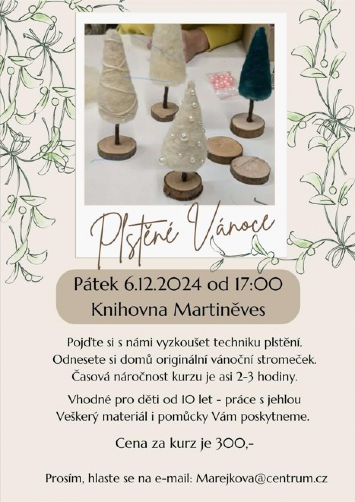 Kurz je vhodný pro děti od 10 let a cena kurzu je 300,- Kč. Přihlásit se můžete u paní Marejkové na e-mailu: Marejkova@centrum.cz