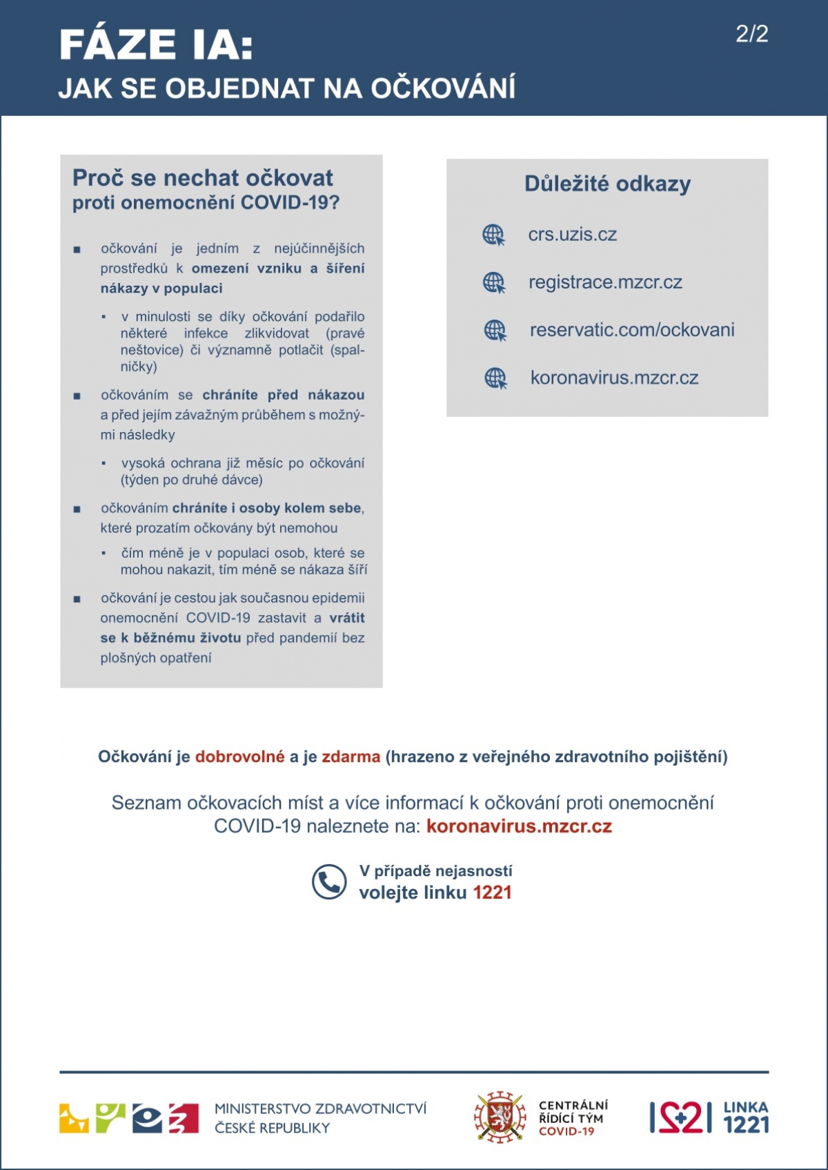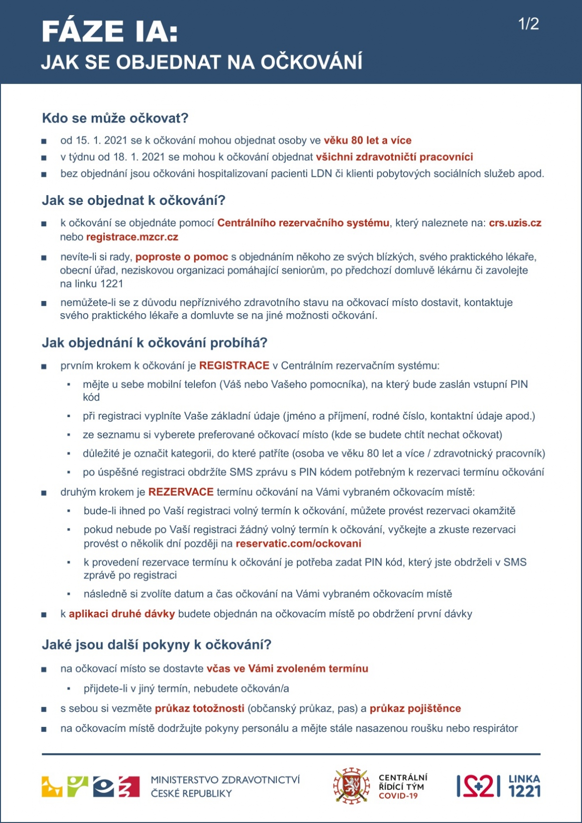 Bližší informace k očkování naleznete na stránkách Ministerstva zdravotnictví na tomto odkaze.