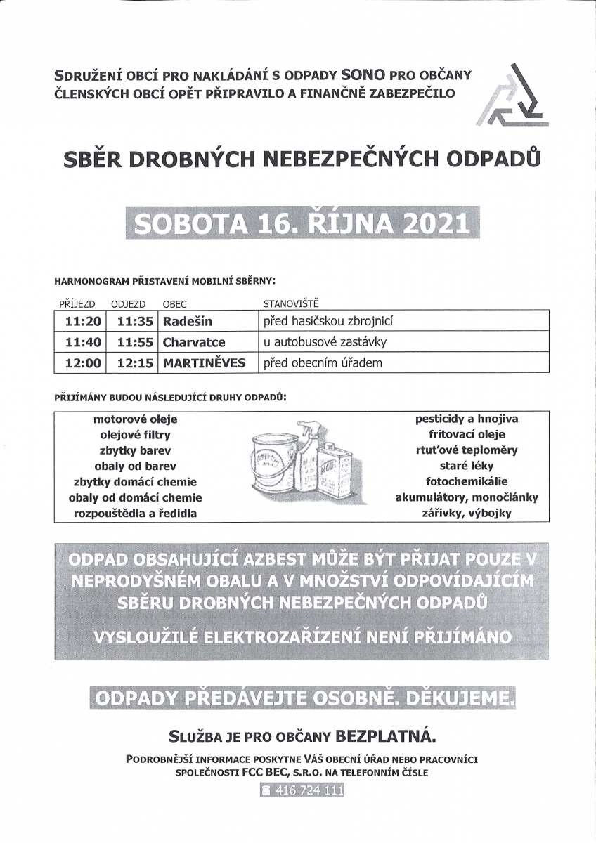 SBĚR DROBNÝCH NEBEZPEČNÝCH ODPADŮ