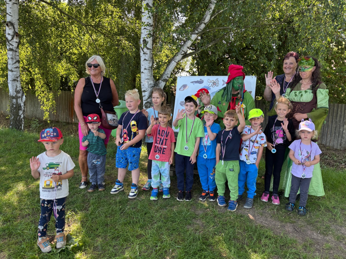 20.6.2025 jsme jeli na výlet k rybníku do Šlapánic, kde jsme se už po několikáté zůčastnili akce "Ve vodě nežijí jen vodníci". Děti si prošly různými stanovišti - chytaly ryby, házely míčem na kuželky, vyslechly povídání o tom, co potřebuje rybář. určovaly některé druhy ryb, třídily ryby podle toho kde žijí - v moři, v řece, v rybníku. Viděly v kádích živé ryby - kapry, úhoře, štiku, candáta, amura. Po cestě potkaly vodnickou rodinku. A na závěr bylo občerstvení - párky v rohlíku s limonádou.