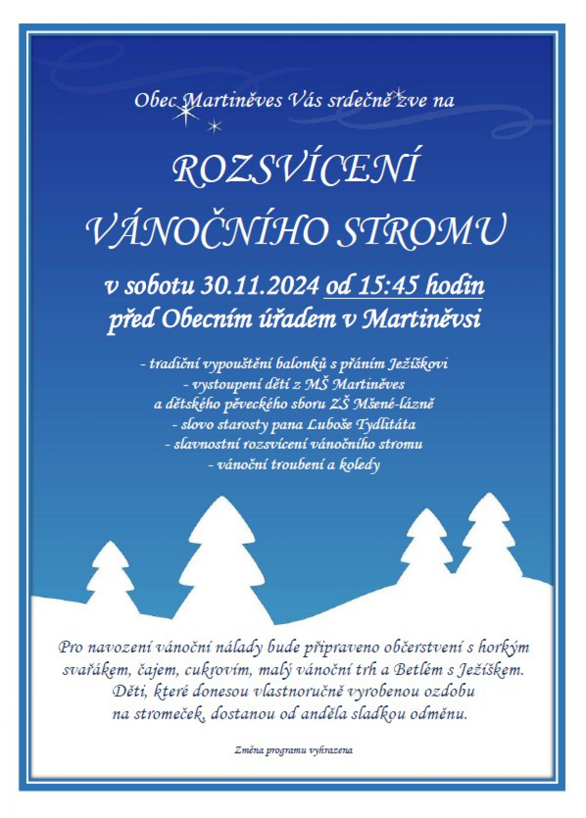 Prodej vstupenek na Obecním úřadě v Martiněvsi, tel. 416 866 044, 733 196 232.