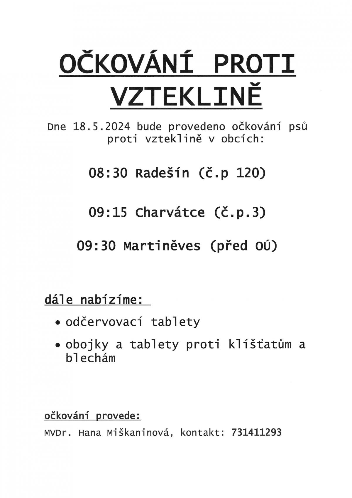 V pondělí 10. června 2024 bude Obecní úřad v Martiněvsi z technických důvodů otevřen až od 13:00 hod. Děkujeme za pochopení.