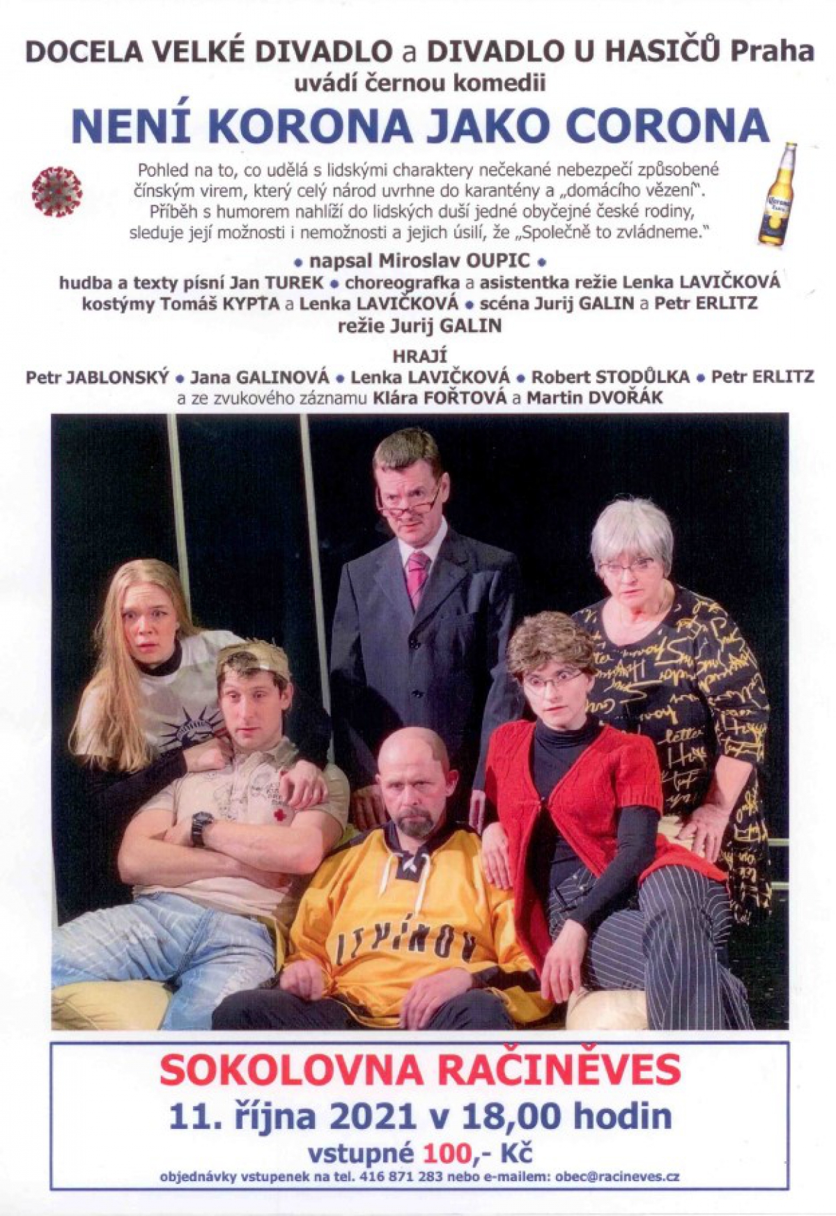 Obec Račiněves Vás zve na černou komedii s názvem "Není korona jako corona",